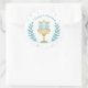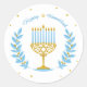 Un joli design Hanoukka avec une jolie menorah et des vignes en bleu pastel et or.
