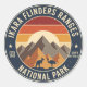 Celebrate the rugged beauty of South Australia with this Ikara Flinders Ranges National Park sticker, designed in a bold, vintage-inspired badge style. Featuring layered mountain peaks set against a warm outback sunset, this circular design captures the iconic colors of the Australian landscape—rich ochres, burnt oranges, sandy neutrals, and deep twilight blues. In the foreground, a kangaroo and emu silhouette pay tribute to the region’s native wildlife, adding an authentic touch that outdoor enthusiasts and nature lovers will appreciate.