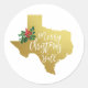 Joyeux autocollant de Noël Y'all avec un faux feuille d'or état Texas et des baies de houx aquarelle avec typographie moderne.