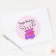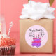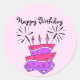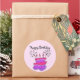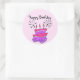 Autocollant à gâteau violet et rose pour l'anniversaire. Ces autocollants amusants peuvent être personnalisés avec un message ou le nom de votre enfant en utilisant le modèle préfait. Utilisez ces autocollants pratiques comme faveurs pour la fête d'anniversaire ou les scellants d'enveloppe.