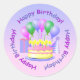 Joyeux Sticker d'anniversaire, idéal pour célébrer les anniversaires de votre famille et de vos amis. Fait une excellente enveloppe pour les cartes d'anniversaire. Un design coloré d'un gâteau d'anniversaire à deux couches avec bougies d'anniversaire, ballons, casquette de fête et un cadeau d'anniversaire.