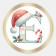 Rond Monogram letter E, Santa hat Christmas Sticker