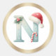 Rond Monogram letter N, Santa hat Christmas Sticker