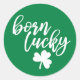 L'expression inspirante "Born Lucky" affichée dans une police de caractères blanche avec un shamrock blanc dessiné à la main sur un arrière - plan vert.