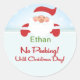 Père Noël Pas De Pékin Jusqu'À Noël Sticker. Parfait pour ajouter aux cadeaux comme étiquette cadeau ce Noël! Personnalisez avec le nom du destinataire ou laissez le champ de texte clair si vous ne voulez pas spécifier de nom. Design propose un vieux Père Noël joyeux aux joues roses et une grande barbe blanche en costume rouge contre un ciel enneigé aux flocons de neige !