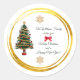 Add a festive and elegant touch to your holiday gifts and décor with this charming Christmas sticker! Featuring a beautifully designed Christmas tree inside a golden circle, the sticker is accented with two golden snowflakes at the top and bottom and a festive red bow between the text areas.. . .