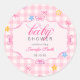 Rond Pink Gingham Floral Bow Baby Shower Sticker