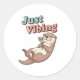 Rond Retro Otter Just Vibing Vinyl Sticker