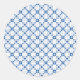 "Round sticker with intricate blue and white geometric pattern, reminiscent of tile design. The sheet displays multiple stickers with the same pattern, arranged neatly."