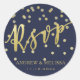 NewParkLane - Élégants autocollants de mariage ou de fiançailles, avec la citation "RSVP" dans l'élégante typographie de script de brush en faux or, contre un arrière - plan bleu marine avec confettis en or. Facile à customiser à Zazzle avec vos propres noms, date ou autre texte pour un design personnalisé. Tous les styles de texte, couleurs, tailles peuvent être modifiés selon vos besoins. Vous pouvez également changer la couleur arrière - plan en n'importe quelle couleur. Consultez cette collection de scripts de brosse d'or pour trouver les éléments correspondants, ou d'autres devis. Avez-vous des souhaits particuliers en matière de design personnel? N'hésitez pas à me contacter.