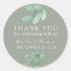 Élégant autocollant de remerciement rond avec arrière - plan vert sauge doux et accents d'eucalyptus aquarelle. Vous y trouverez les noms du couple et la date du mariage - une façon agréable d’ajouter une touche personnelle aux faveurs, aux sacs-cadeaux ou aux cartes de remerciements. Vous avez besoin d'un article correspondant ou d'une version personnalisée ? N'hésitez pas à communiquer avec : bpkolman@gmail.com