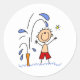 Un garçon à silex se tient sous l'arroseur pour s'assurer qu'il reste cool pendant une chaude journée d'été. Ce joli design d'été peut être personnalisé facilement avec un nom ou un autre texte.