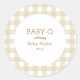 Simple beige gingham baby shower circular sticker.