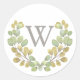 Rond Simplicité Feuille verte Sticker Monogramme Wreath