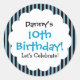 Sticker 10th Birthday Blue Stripes V1CA Ce joli autocollant rayé ajoute une belle touche à vos invitations d'anniversaire et à vos faveurs de fête d'anniversaire. Si mignon ! Personnalisez avec le nom de la fille ou du garçon d'anniversaire !