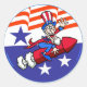 Montrez votre patriotisme avec ce design 4 juillet avec l'oncle Sam qui roule sur une fusée avec un arrière - plan rouge, blanc et bleu.