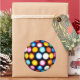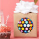 Autocollant rond avec image de lumières colorées émanant d'une boule de disco. Voir collant vinyle taillé sur mesure, confetti, sac de faveur, étiquette préférée et papier d'emballage. Voir toute la collection Disco les années 70 Sticker dans les INVITATIONS | Section Stickers & Étiquettes.