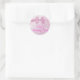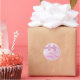 Cet autocollant d'anniversaire personnalisable moderne présente un arc rose sur un arrière - plan rose à fleurs. Customisez-le en ajoutant vos détails dans la police de votre choix !