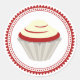 Un autocollant avec l'illustration d'un cupcake en velours rouge à l'intérieur d'un cercle décoratif.