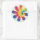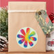 Autocollant rond avec l'image d'une fleur psychédélique aux couleurs vives sur vert clair. Voir collant vinyle taillé sur mesure, confetti, sac de faveur, ballotin, étiquette de faveur, sacs cadeaux, étiquette et papier d'emballage. Voir toute la collection Disco les années 70 Sticker dans les INVITATIONS | Section Stickers & Étiquettes.