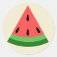 Un autocollant illustrant une tranche de pastèque en forme de triangle avec quatre graines. Recherchez les articles correspondants chez Jill's Paperie.
