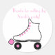 Grand autocollant pour une fête anniversaire de enfant ou pour tout événement de roller. Il présente un dessin d'un patin à roulettes rose et blanc. Vous pouvez y customiser le texte.