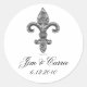Elégant métal argenté comme Fleur De Li sur un arrière - plan noir, fait un bel autocollant pour le dos de vos enveloppes. Customisez de personnaliser pour votre mariage.