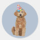 Rond Sticker avec doodle doré d'anniversaire