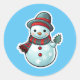 Rond Sticker avec mignon Snowman tenant une feuille