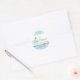 Mignonne autocollant Baby shower avec un Eléphant Bébé Doux tenant un parapluie bleu & vert avec un petit oiseau marron. Un autocollant parfait pour les faveurs pour bébés ou les enveloppes d'invitation! Des invitations, des timbres-poste et des notes de remerciement sont disponibles dans notre boutique à l'adresse www.celebrateitinvites.com. ©Cocoa Studio