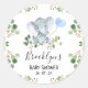 Sticker Baby shower bleu à bulles d'éléphant Autocollant bleu à baby shower d'éléphant d'aquarelle pour garçon mignon avec un mignon éléphant d'aquarelle, un ballon bleu en forme de coeur et un feuillage d'eucalyptus. Cet autocollant ou étiquette est idéal pour un baby shower à thème d'éléphant pour garçon.
