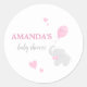 Rond Sticker Baby shower fille Eléphant rose mignon