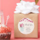 Autocollant rond pour baby shower faveur avec design de fleur de bocal en maçon et arrière - plan aquarelle.