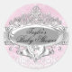 Rond Sticker Baby shower rose Tiara & Damask