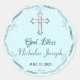 L'autocollant "Dieu bénisse" pour toute occasion religieuse. Idéal pour les scellés d'enveloppe ou les faveurs. Bleu bébé, Argent et blanc. Couleurs Classiques.