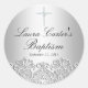 Rond Sticker Baptême de dentelle blanche et croix