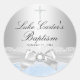 Rond Sticker Baptême Dentelle Bleue & Croix