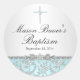 Rond Sticker Baptême Rose Bleu & Croix