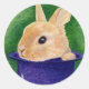 Illustration d’un lapin qui regarde du chapeau d’un magicien. Souhaitez à cette personne spéciale un anniversaire magique, Pâques ou juste sortir pour dire bonjour magique! Aussi jolies cartes assorties, timbre, aimant, mousepad, sac, tablier, t-shirt.