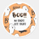 Ces adorables étiquettes cadeaux fantômes sont un moyen rapide et facile de décorer vos faveurs ou gâteries pour la fête d'Halloween. Ils disent "Boo ! No Tricks, Just Tras" avec un fantôme adorable sur un arrière - plan orange.