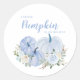 Petit autocollant citrouille bleu baby shower carré. Facile à modifier le texte.