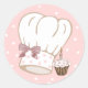 Des autocollants de Whimsical en rose avec des pois blancs, et un casquette de caricaturiste, avec un cupcake. Mignonne pour vos cadeaux faits maison.