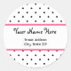Un autocollant d'adresse avec un arrière - plan de petits pois noirs sur blanc. Personnalisez avec votre nom et votre adresse dans le cadre rose. Recherchez les articles correspondants chez Jill's Paperie.