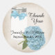 Chic stickers de faveur de mariage, fait dans un ivoire antique, avec des graphiques d'un pot de maçon et une fleur d'hydrangée bleue. Personnalisez le texte noir pour votre journée spéciale. Parfait pour vos faveurs de mariage. Produits correspondants disponibles.