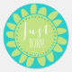 Cet autocollant floral bleu et vert fantaisie présente le texte - Just Born in Modern Typography. Parfait pour les nouvelles occasions pour bébé.