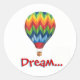 Un autocollant inspirant avec une montgolfière colorée et un message "Dream" en dessous. Grand cadeau de nouveauté pour quiconque a besoin d'encouragement!