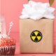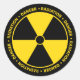 Symbole de rayonnement jaune sur un arrière - plan noir avec le texte d'avertissement environnant.