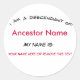 Personnaliser avec le nom de l'ancêtre pour utilisation comme étiquette de nom lors des réunions de famille. Modifiez le texte et commandez des étiquettes de nom imprimé individuelles pour les participants, ou laissez cette zone vide pour être écrite ultérieurement.