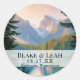 Cet autocollant personnalisable présente un paysage serein et pittoresque avec des montagnes, des arbres et un lac tranquille, créant un cadre parfait pour vos détails de l'événement. Le design de l’autocollant comprend du texte personnalisable pour les noms, la date et l’emplacement, encadré dans une superposition souple et transparente au milieu de l’image. Son style élégant et intemporel en fait un lieu idéal pour les fêtes de mariage, les invitations ou les cadeaux, qui capte l'essence d'une célébration à thème rustique ou extérieur. Il est polyvalent et peut être utilisé sur des enveloppes, des sacs-cadeaux et d’autres articles pour ajouter une touche personnelle à votre journée spéciale.