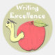 Ce Sticker est imprimé avec un ver mignon de troisième cycle qui sort d'une pomme et les mots "Ecrire l'excellence" Quelle belle façon de renforcer l'estime d'un enfant pour travailler dur avec ses universitaires.